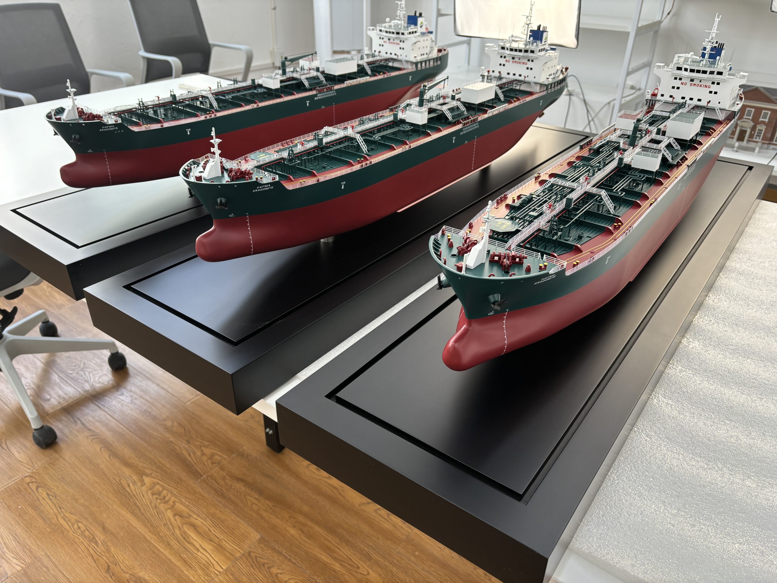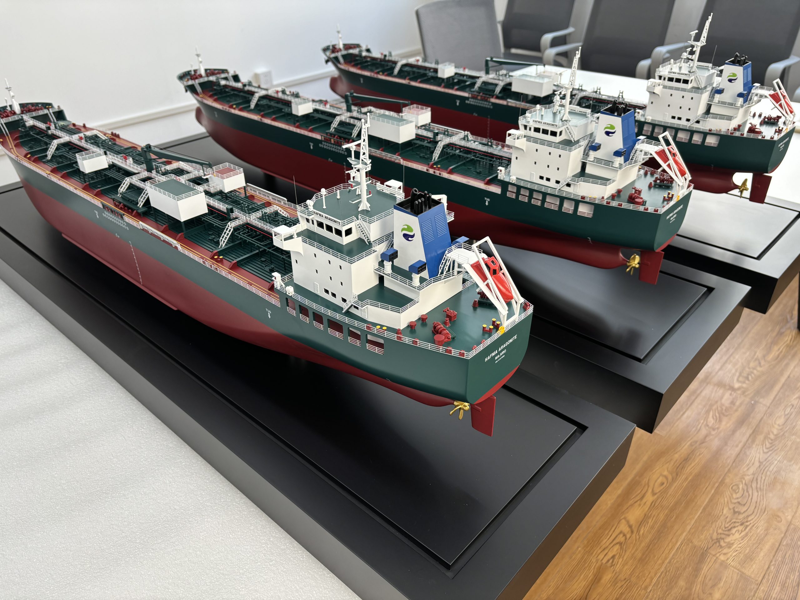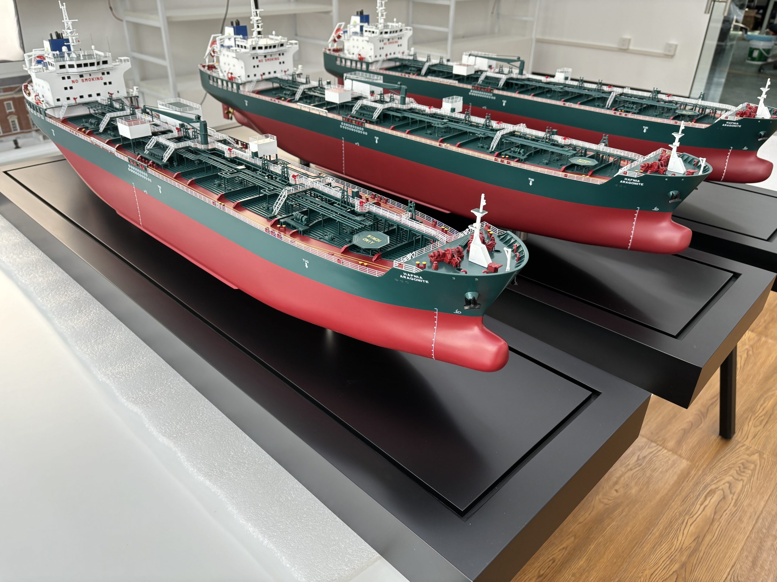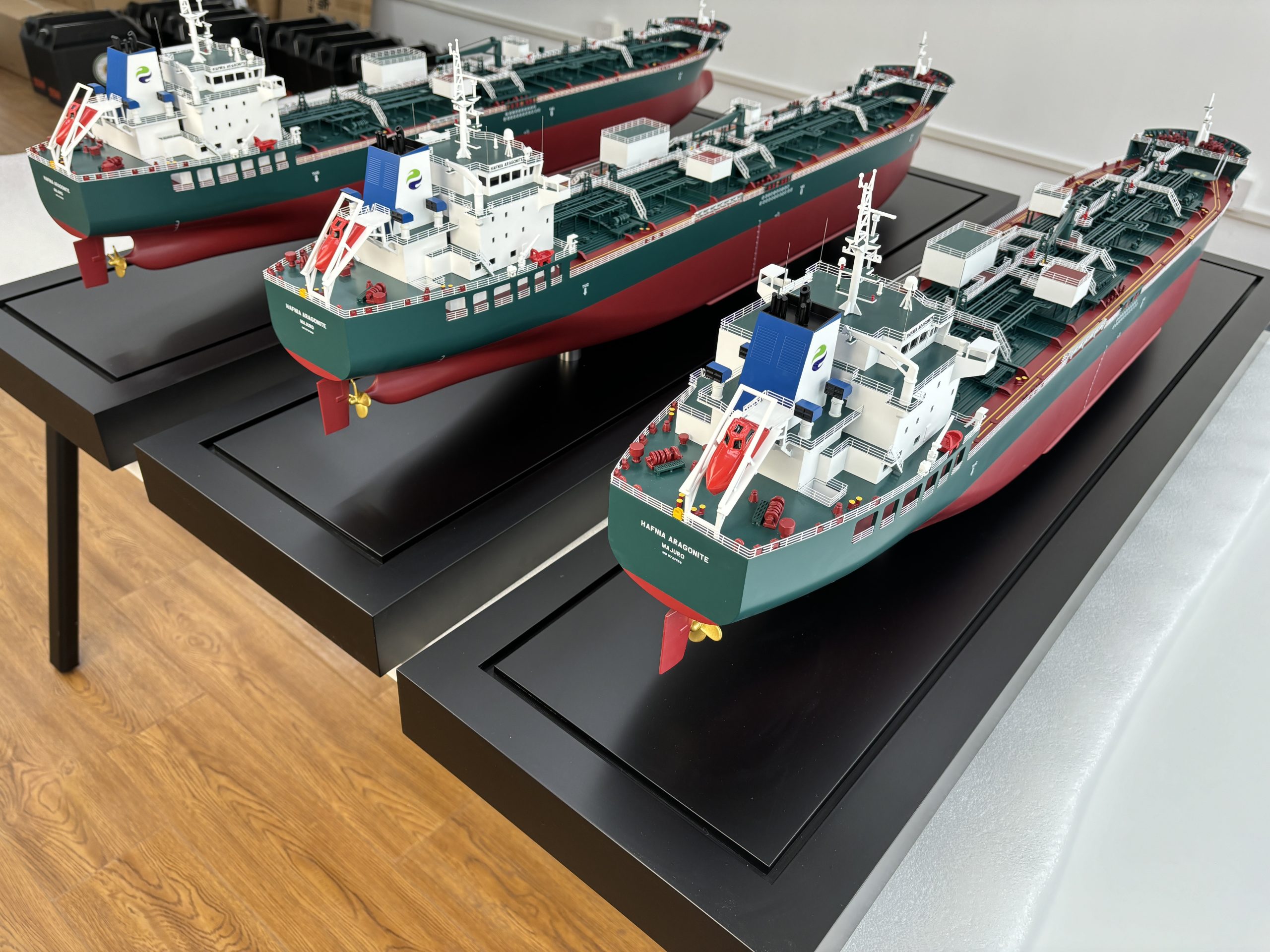 Premier Ship Models have recently completed a custom order for three Hafnia Aragonite models, each measuring 110 centimetres in length.