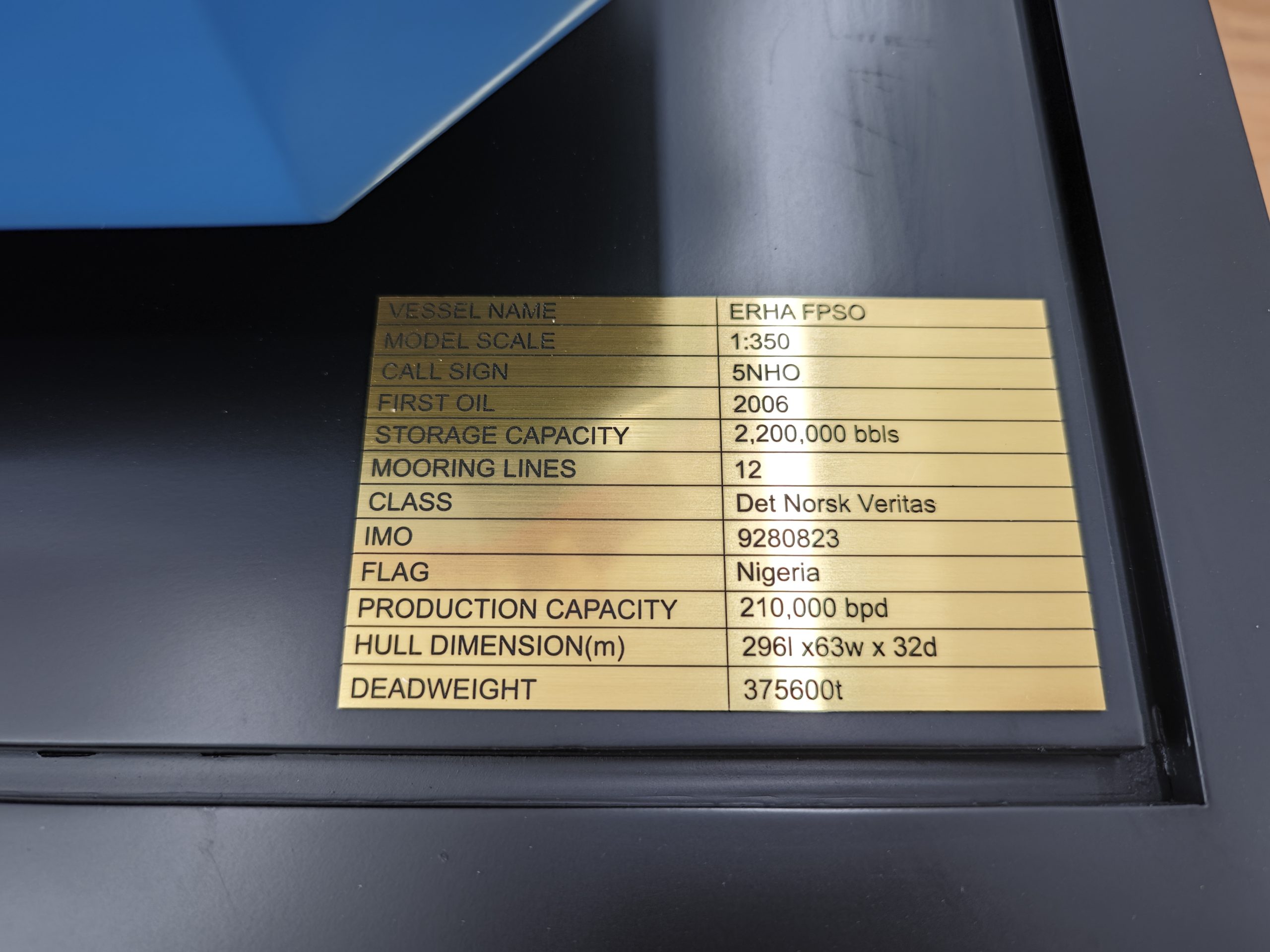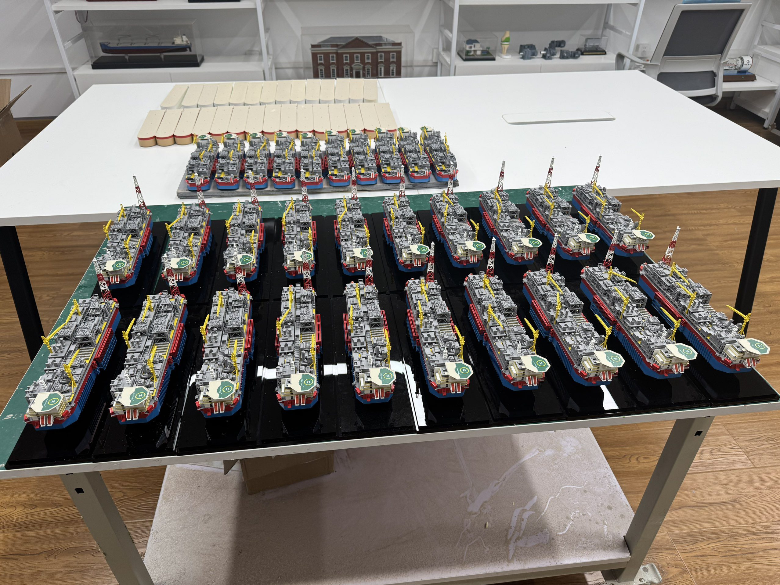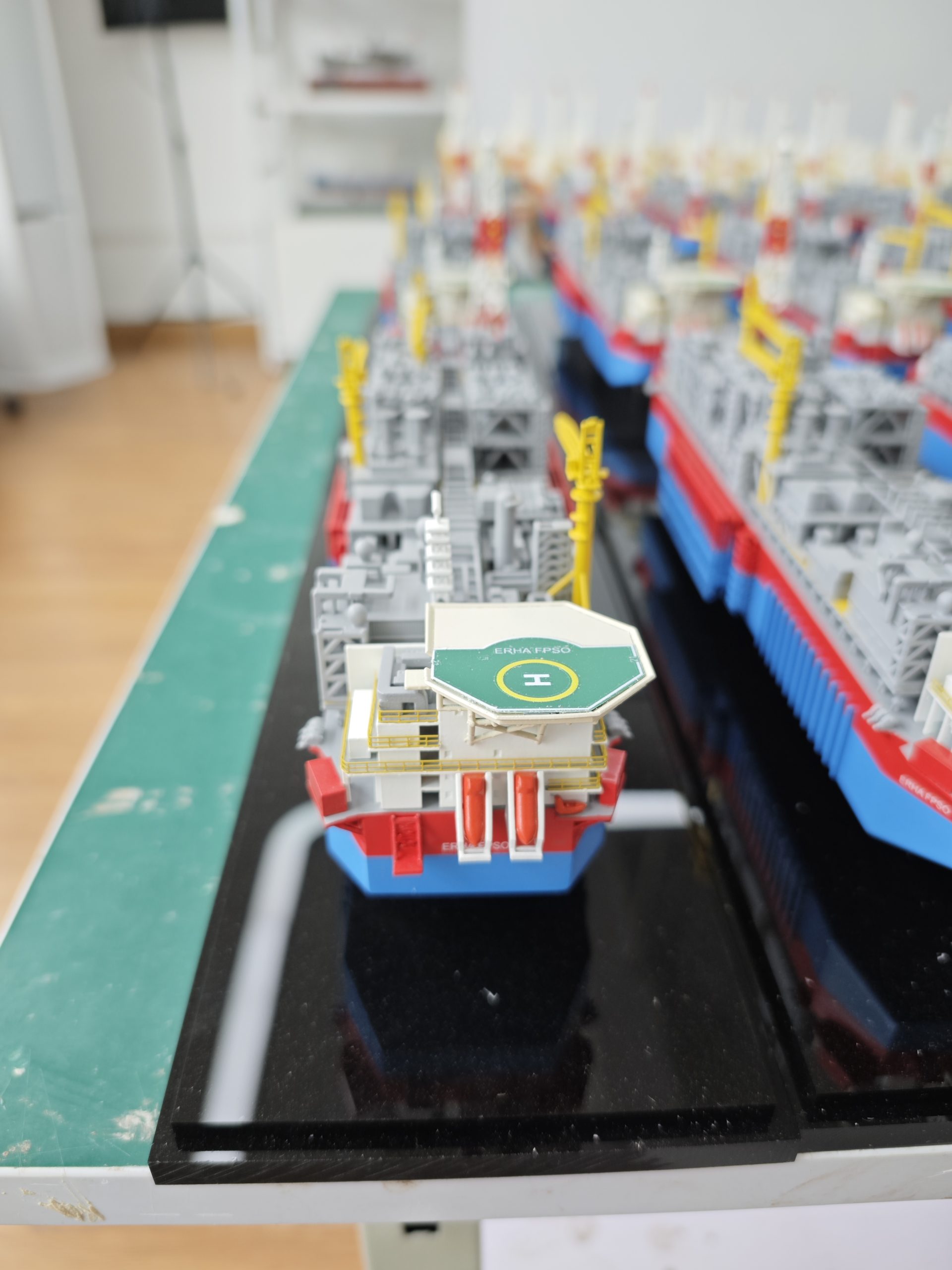 Premier Ship Models were recently contracted with a rather complex order of two large Erha FPSO models, as well as one large Usan FPSO model, together with thirty smaller models of each, to be completed for a private foreign company.