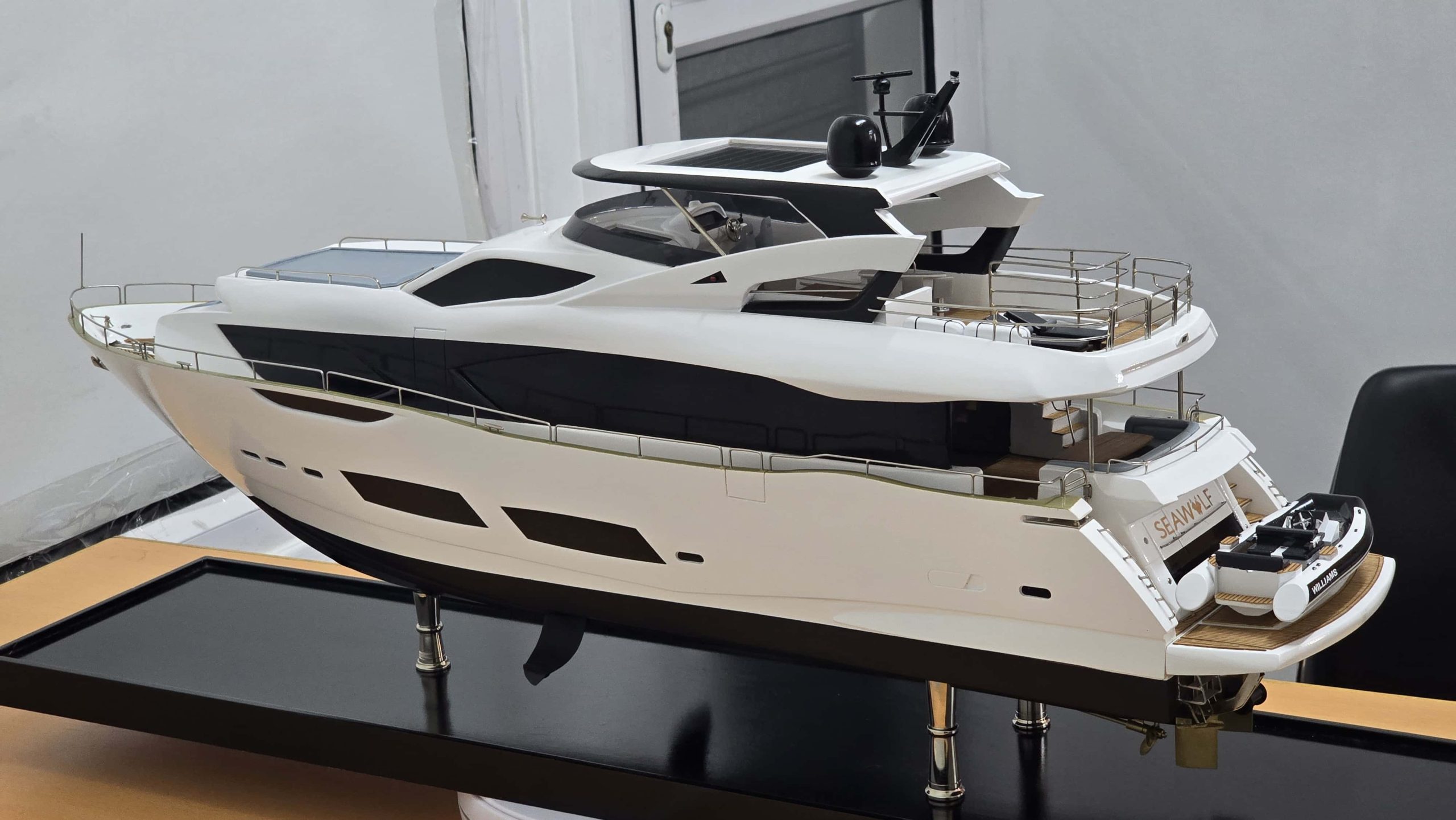 Premier Ship Models have just finished a custom build for a Sunseeker 95 yacht model! Our rendition was to measure exactly 80 centimetres in length, and was to be without any internal mechanisms or illumination.